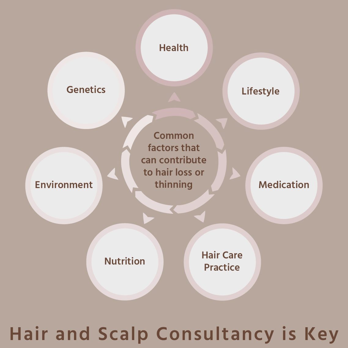 - During your consultation, we explore several key factors that may contribute to hair loss and scalp problems, including: