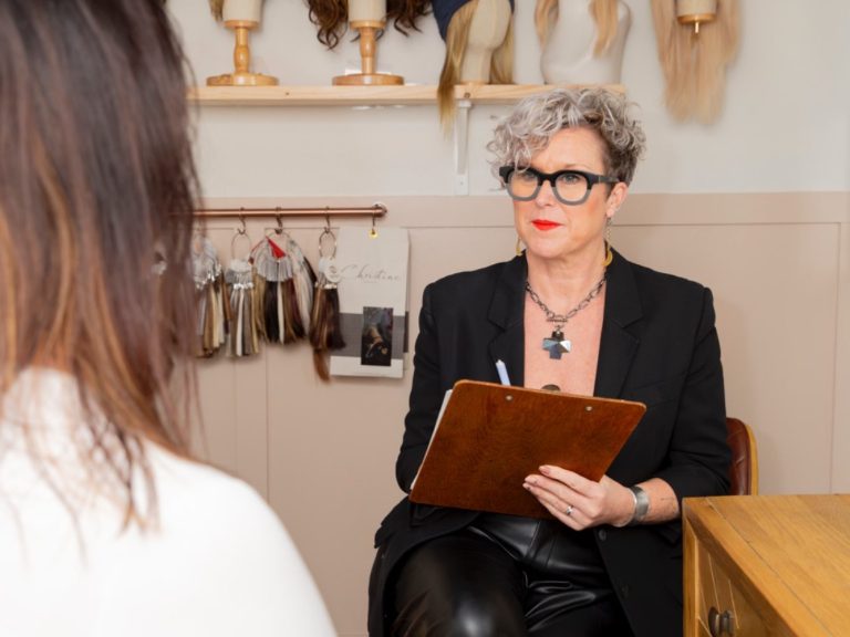 A consultation starts with piecing together when are you going to be wearing your hair piece, how long for, and during what activities? We then look at the construction of wig that feels comfortable, piecing together what wig piece you would like to try? The second visit is all about trying on your chosen styles, and finding your confidence again. The studio is in a private one to one setting, with space to bring a friend or partner for support.